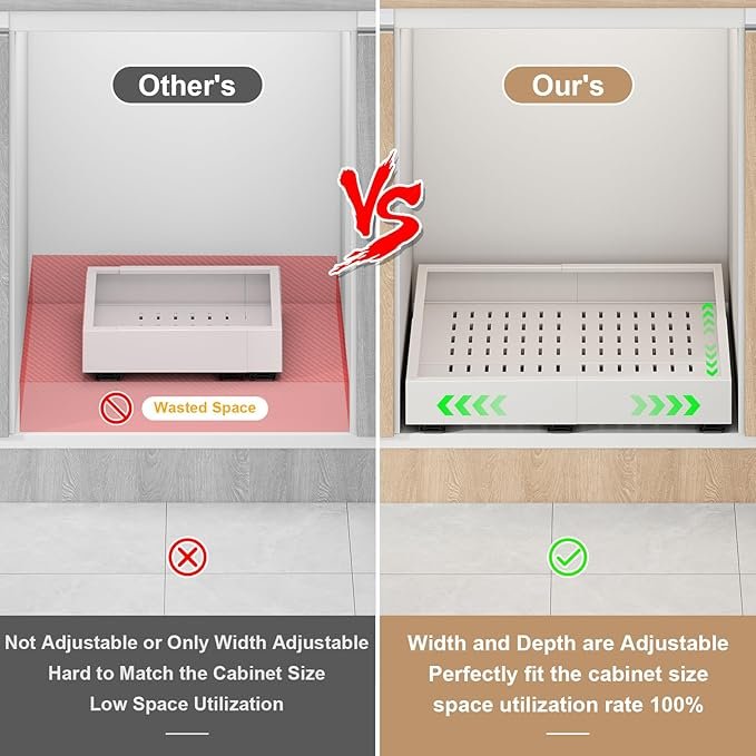 One of the biggest advantages of the Expandable Pull-Out Cabinet Organizer Drawer is its adjustable frame. Unlike fixed-size organizers that work only in certain cabinets, this model is designed to fit: