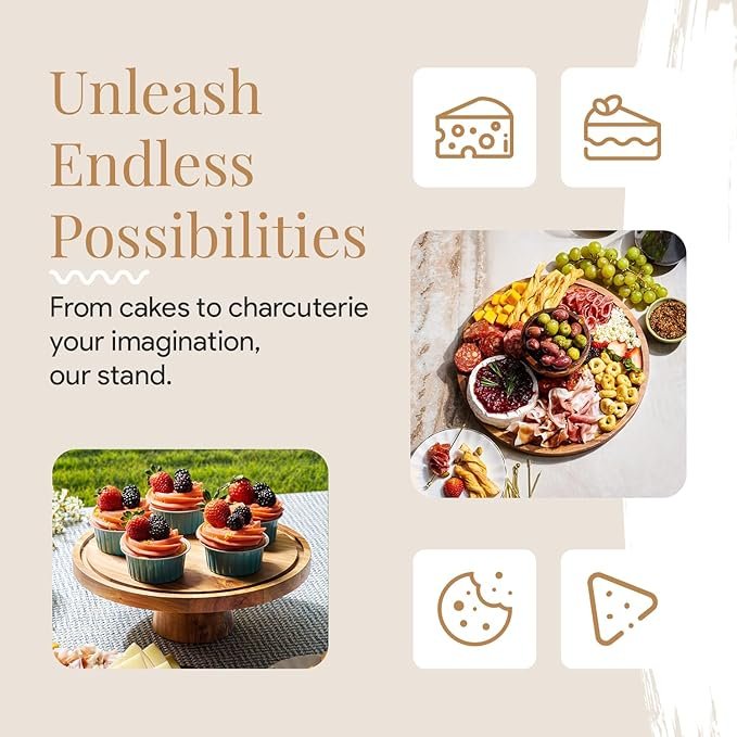 Elevate your dessert presentation with the Homesphere Acacia Wood Cake Stand with Lid—a stylish, 12-inch platform featuring a durable acacia wood base and a clear acrylic dome to keep baked goods fresh and dust-free. Its dual-use design transitions seamlessly from cake stand to charcuterie board, making it ideal for parties, family gatherings, and everyday entertaining. Experience elegance and functionality in one piece—click to explore this versatile cake display solution now.