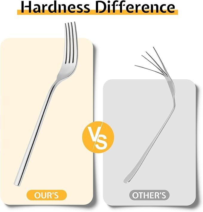 Functionality plays a major role in why shoppers love this flatware set. Each fork features strong, well-shaped tines designed to grip food easily. The spoons offer a deep, smooth bowl shape that enhances the eating experience, whether you’re enjoying cereal, soup, or desserts. Meanwhile, the knives are designed with finely crafted blades that cut smoothly through meats, vegetables, and everyday meals—without feeling overly sharp or flimsy.