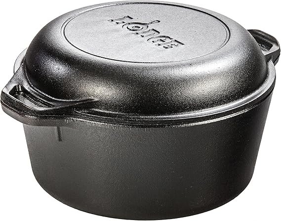 The Lodge L8DD3 5-quart Double Dutch Oven is a versatile cast iron cookware piece with a domed lid that also doubles as a 10½-inch skillet. Pre-seasoned and made in the USA, it delivers superb heat retention and even cooking across stovetop, oven, grill, or campfire use. Ideal for baking bread, slow cooking stews, or roasting meats — a true all-in-one kitchen essential.